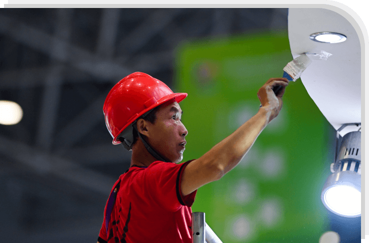 • 急單也不怕,施工人員可兩班倒24小時施工,擁有1000平方以下展臺工廠3天制作、現場2天搭建交付的能力。